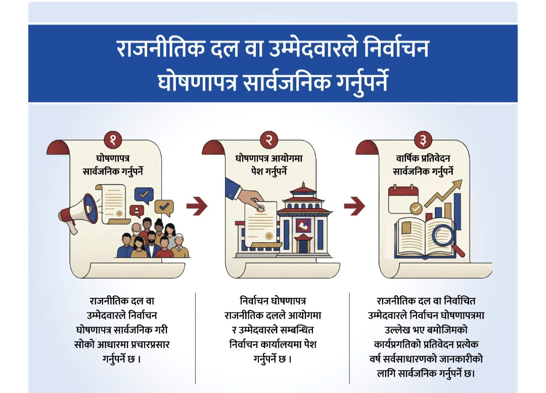 फागुन ३ गतेभित्र घोषणापत्र सार्वजनिक गरी आयोग र निर्वाचन कार्यालयमा पेस गर्न निर्देशन