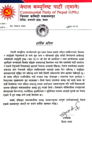 पार्टीले अपिल पत्र सार्वजनिक गर्दै भनेको छ “विद्यमान परिस्थितीमा तपाईहरुको योगदानको निरन्तरता, राजनैतिक कृयाशिलता र सुनिश्चित गन्तव्य आफ्नो पुरानो घर नेकपा एमाले नै हुन सक्छ भन्ने हाम्रो विश्वास छ ।”